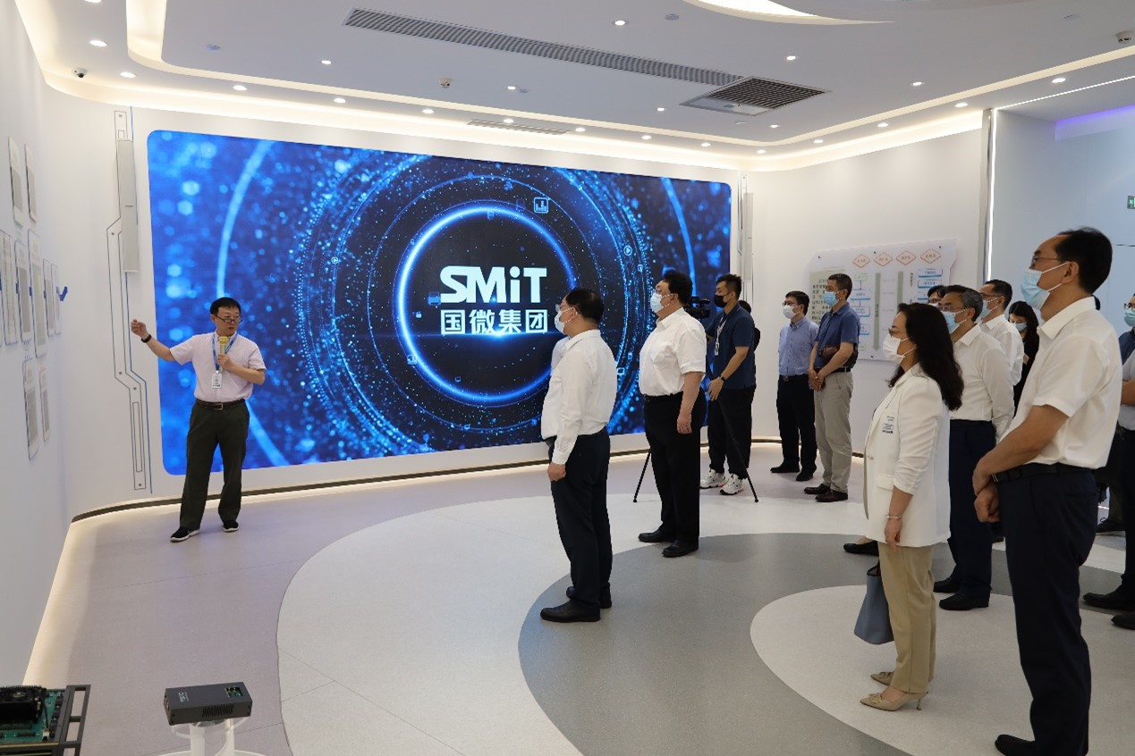 2022 年8月3日下午,深圳市人大常委会党组书记、主任骆文智,副主任蒋宇扬、秘书长汤暑葵、教科文卫工委主任孙福金、办公厅副主任冯钟一行率队莅临国微集团开展关键核心技术攻关情况调研,一同考察调研的还有深圳市发展和改革委、深圳市科技创新委、深圳市工业和信息化局以及部分市人大代表、市相关行业协会、南山区人大常委会、区政府等相关部门领导。